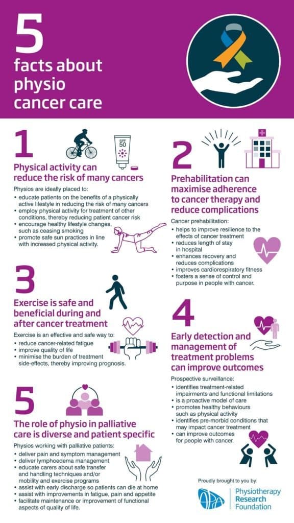 Physiotherapy plays an important role and canhelp address functional decline before, during and after cancer treatment.