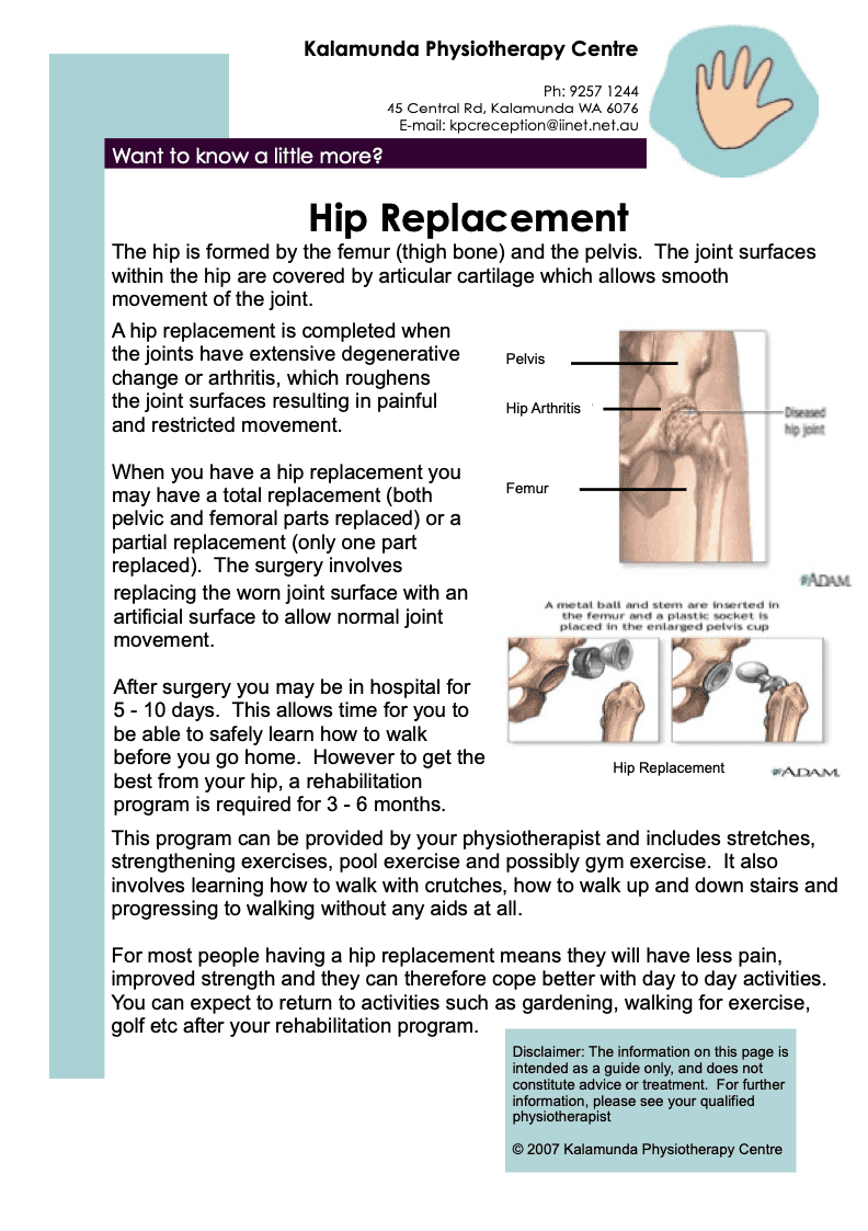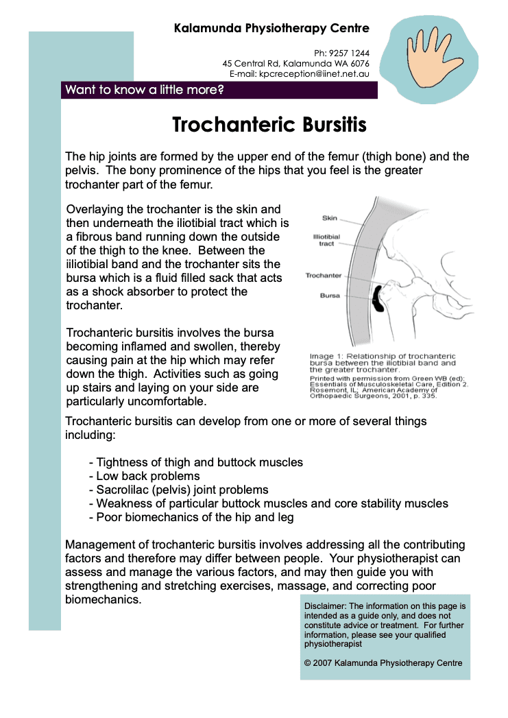 We have put together these fact sheets to provide you with more information about hip injuries, pain, causes, treatment and symptoms: