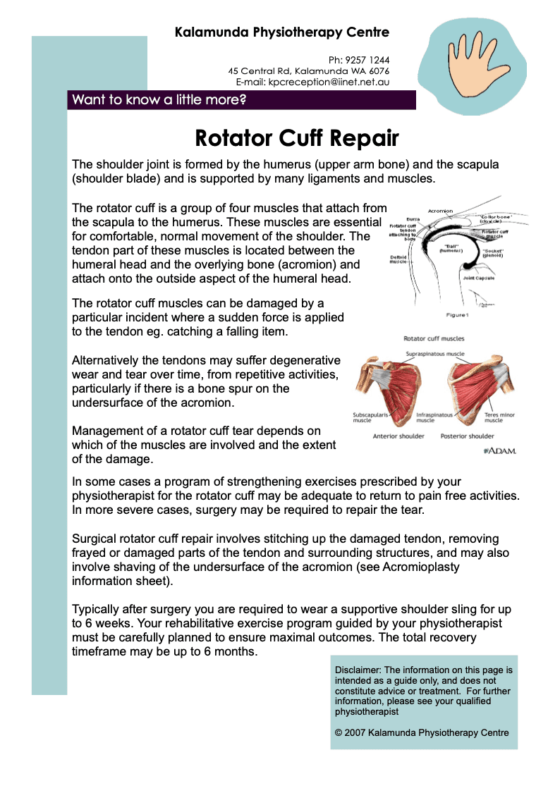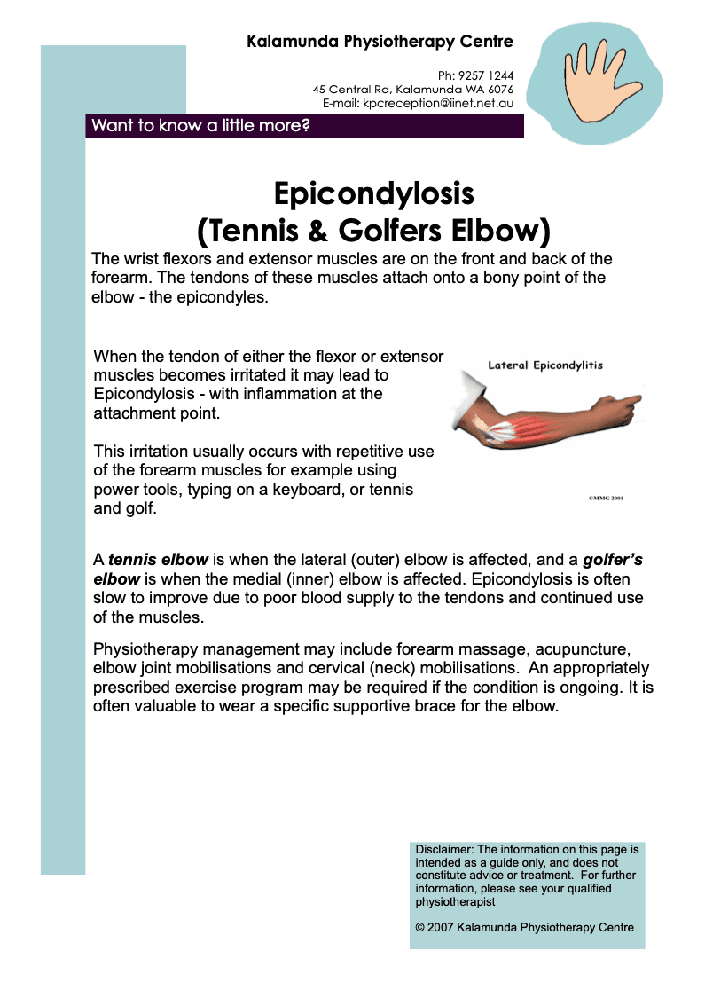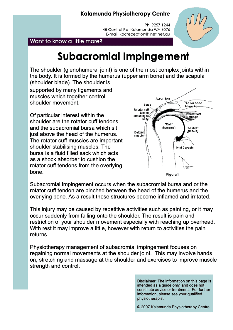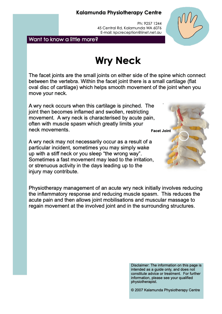 We have put together these fact sheets to provide you with more information about neck, shoulder and arm injuries, pain, causes, treatment and symptoms: