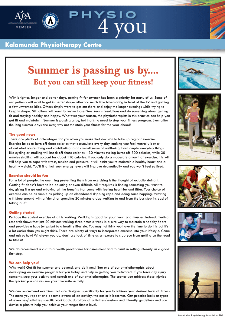 To improve your physical wellbeing these short fact sheets provide information to help you through the different seasons and daily life: