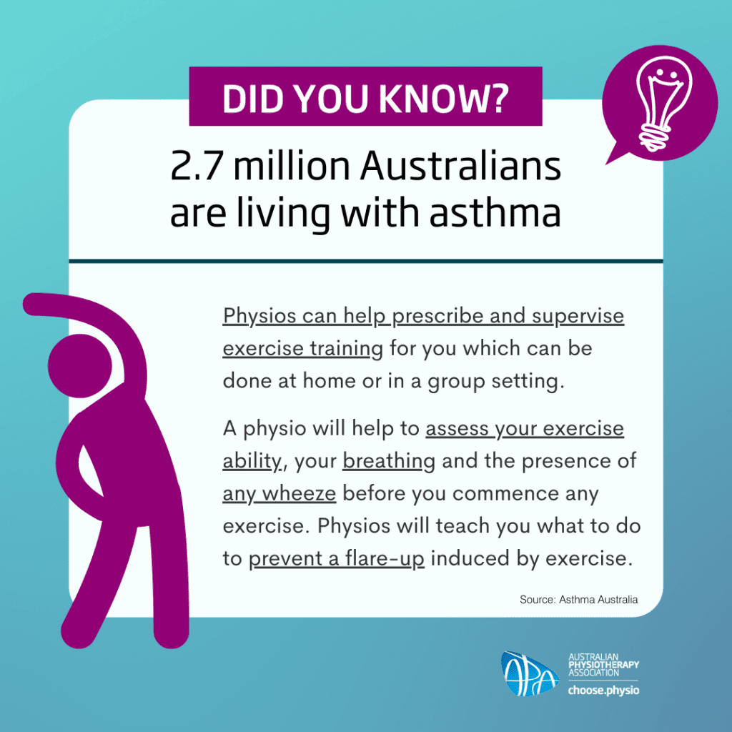 For more information on asthma, go to https://asthma.org.au/get-involved/what-is-on/asthma-week/ or check out how physio can help at https://choose.physio/your-body/chest/asthma